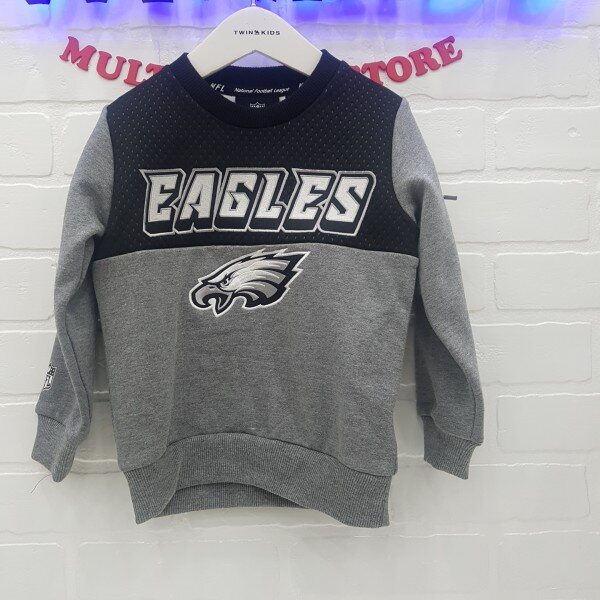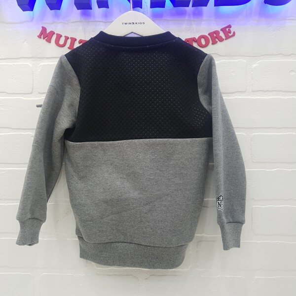 앞 팀 마크 아플리케로 포인트를 준 절개 맨투맨 티셔츠 몸판에 서로 다른 원단으로 배색을 해주었음