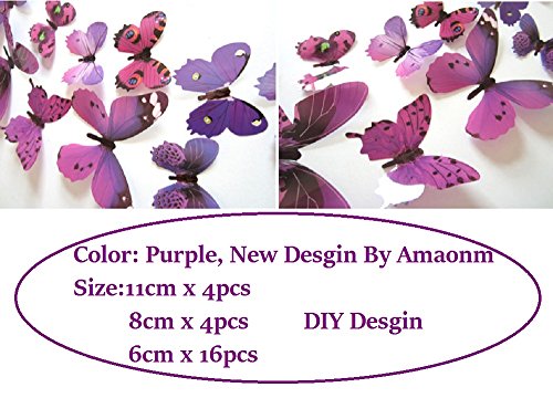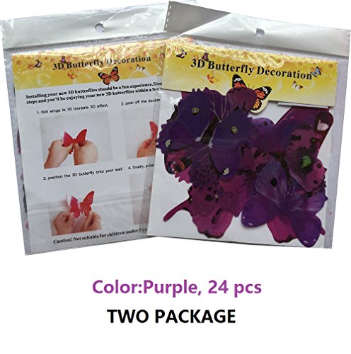 Amaonm 24 Pcs 3D PVC Colorful Butterfly Wall Decals Removable DIY 3D art Crafts Butterflies Flower Wall Stickers for home Offices Classroom School Room Girls Bedroom Wall Decorations (Purple)