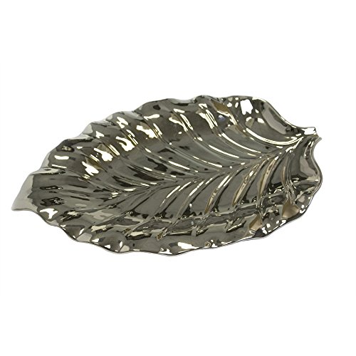 Benzara Patently Designer Decorative Ceramic Leaf Tray, Silver
