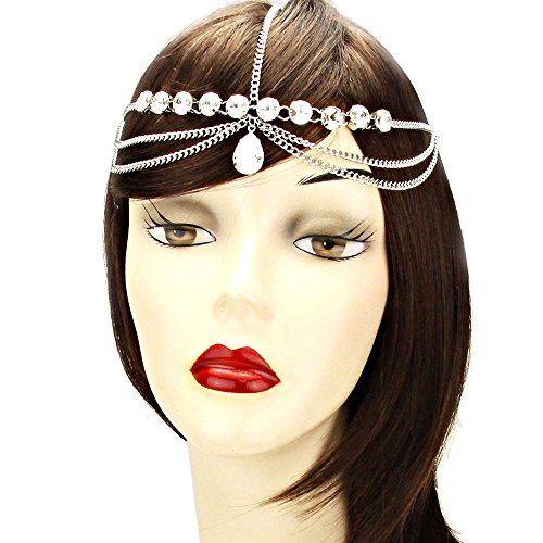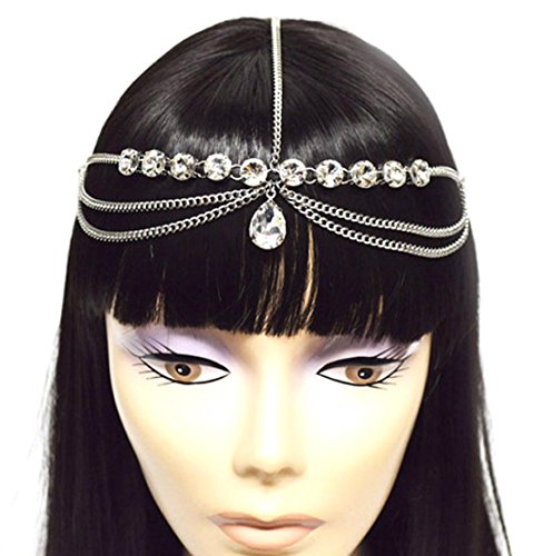 -. Title : Silver Tone Womens Tear Drop Rhinestone Accent Head Chain Jewelry IHC1032R