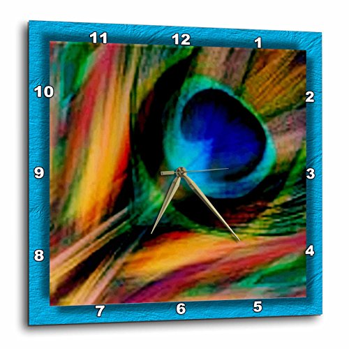 Feather of a Peacock wall clock is a wonderful complement to any room in your home or office. Made of durable high grade aluminum. This frameless clock has a high gloss mirror like, UV coated, scratch resistant finish and is suitable for a moist environment. Sizes available range from 10" x 10" to 15" x 15". requires one AA battery; not included. Battery box is not covered.Feature