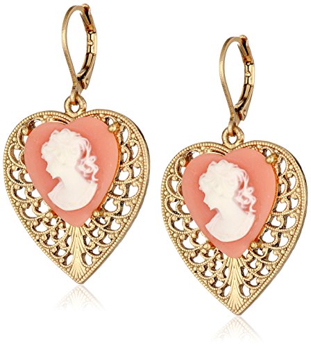 1928 Jewelry Gold-Tone Pink Cameo Heart Overlay Filigree Drop Earrings