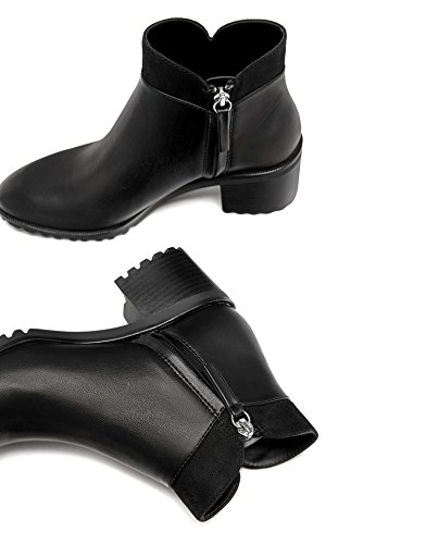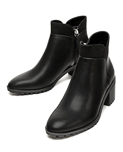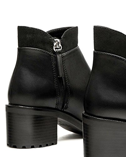 Product Description Black high heel ankle boots. Contrasting materials on the upper. Block heels. Track soles. Side zip fastening. Sole height 5 cm. / 1.9 inches Official brand size equivalence for Women Shoes. Size 35 | USA 5 ? ?|?UK 2 Size 36 | USA 6 ? ?|?UK 3? Size 37 | USA 6.5 |?UK 4? Size 38 | USA 7.5 |?UK 5? Size 39 | USA 8 ? ?|?UK 6 Size 40 | USA 9 ? ?|?UK 7? Size 41 | USA 10 ?|?UK 8? Size 42 | USA 11 ?|?UK 9? Size 43 | USA 12 ?|?UK 10 0
