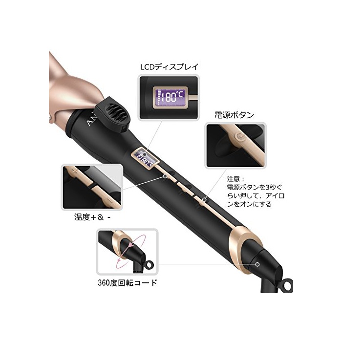 원본상품명: Anjou 25mm ヘアアイロン カル マイナスイオン プロ仕 80℃~210℃ 14段階度調節 自動電源OFF