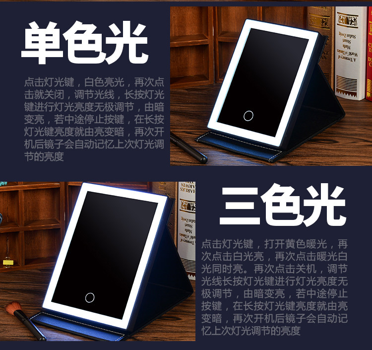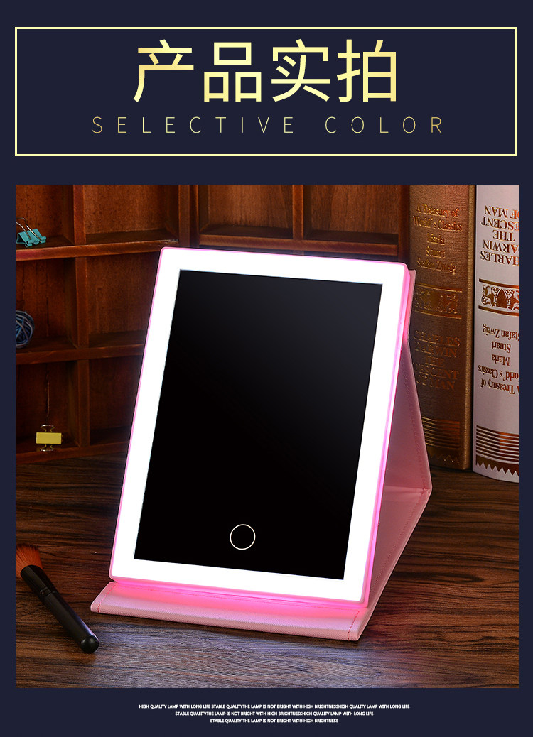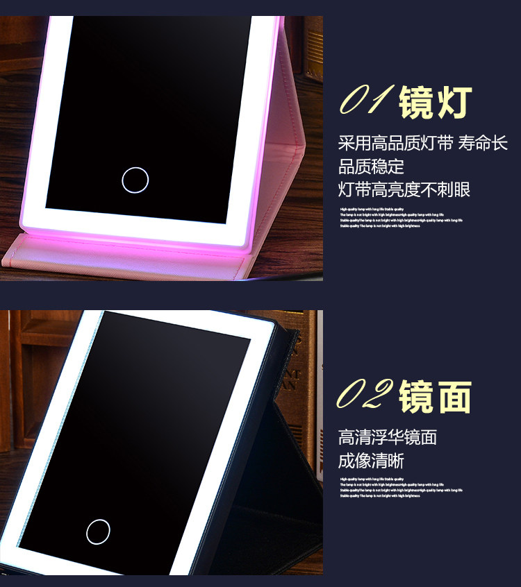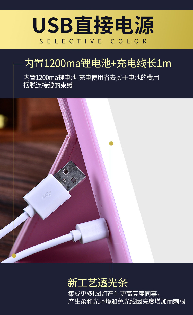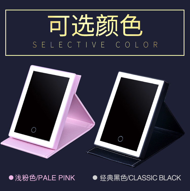 充电LED化妆镜带灯宿舍学生小镜子折叠便捷随身化妆镜台式梳妆镜