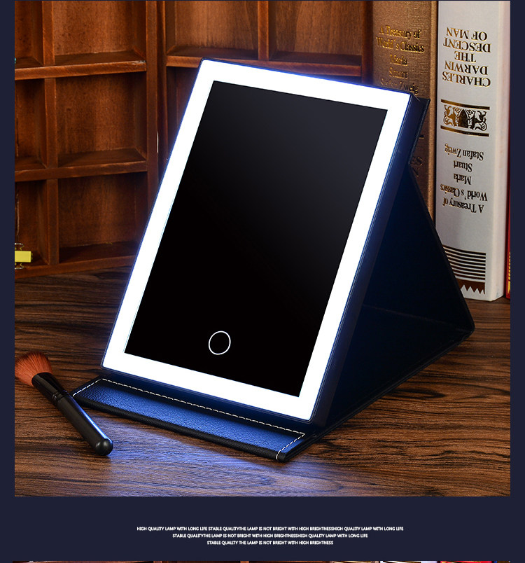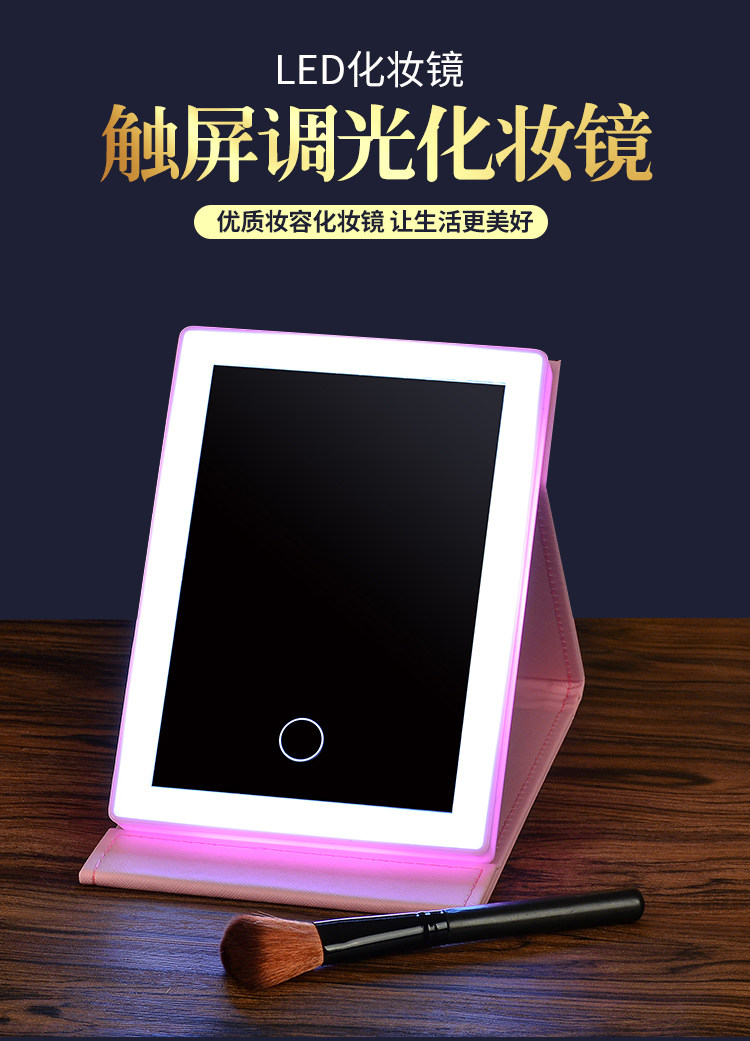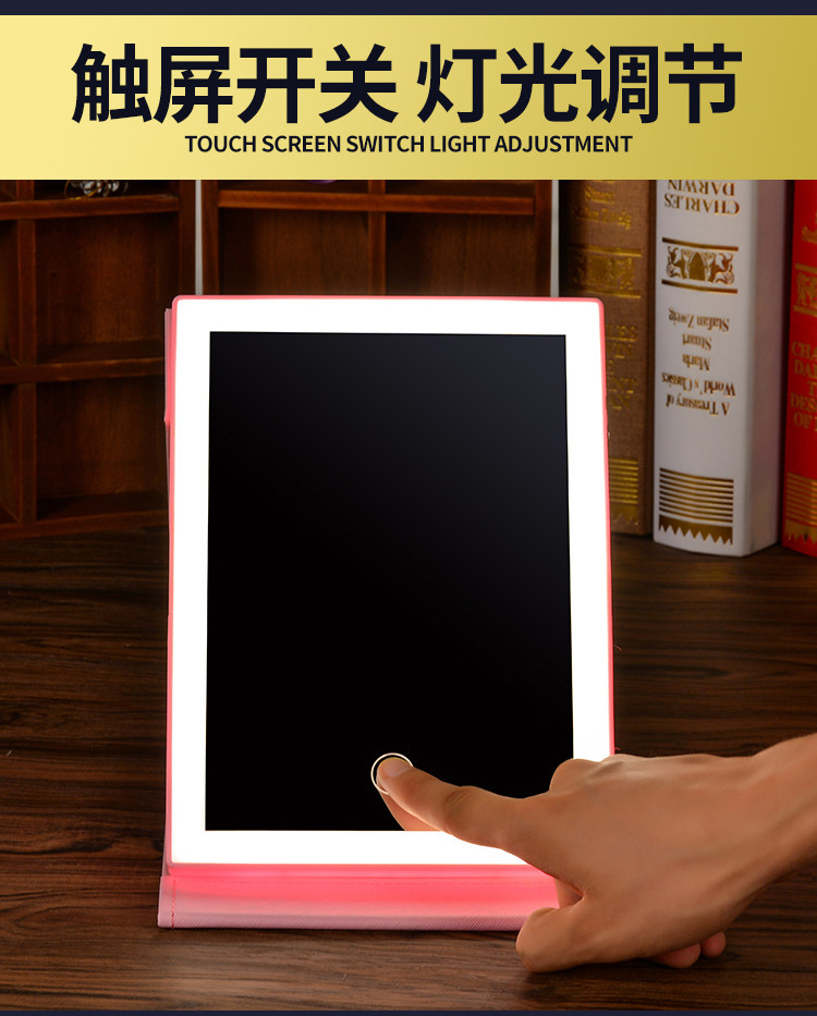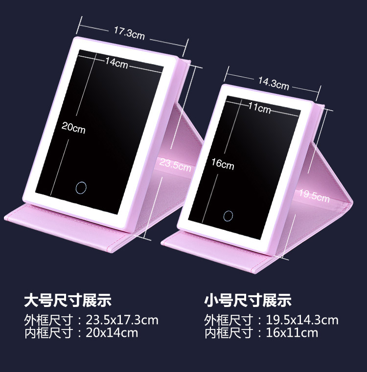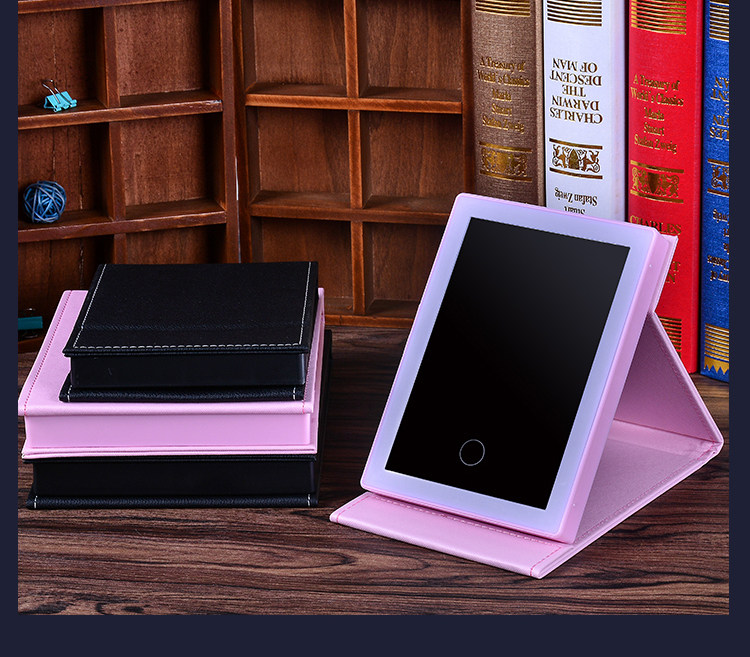 充电LED化妆镜带灯宿舍学生小镜子折叠便捷随身化妆镜台式梳妆镜