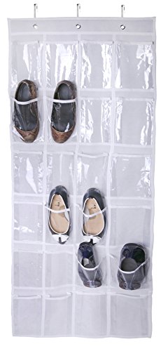 - Feature : ✓ 24 Pocket Fabric Space Saving Over The Door Hanging Shoe Storage Organizer - Hangs Over Any Standard Door. Conveniently Store 12 Pairs of Shoes. Versatile Design That's Also Great For Storing Accessories, Craft Supplies, Small Toys, And More. / ✓ Made Of Sturdy Polyester With Durable Clear Reinforced Vinyl Pouches That Helps To Protect Accessories And To Quickly Find What You Have Stored Inside. / ✓ 3 Over The Door Steel Hooks That Makes The Hanging Process Quick And Easy For Any Door And Prevents The Organizer From Sliding Side-To-Side And Will Not Leave Marks On A Standard Size Door. / ✓ White Color Organizer That Will Blend In Anywhere - Sizeable Measuring 20" Wide X 54" Long (50cm x 138cm). No Hardware Is Required. / ✓ Buy It Now With Confidence, This Best TOP QUALITY Over The Door Hanging Shoe Storage Organizer Turns A Mess Into Organized Success. 100% Satisfaction And Money Back Guarantee.