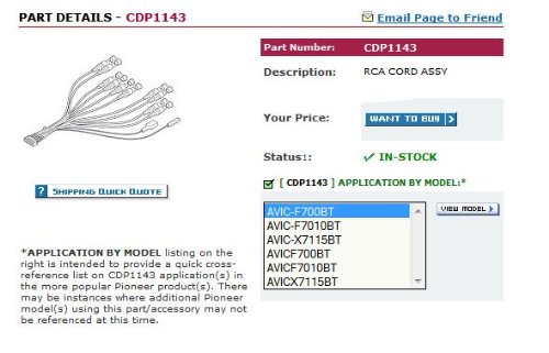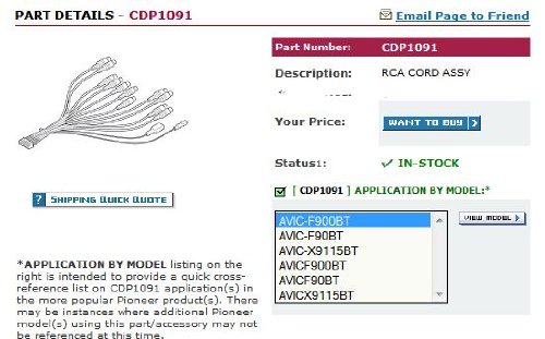 Pioneer Compatible Rca Cord Assembly for Cdp1143 Cdp1091 Avic F700 F700 X9115bt F900BT