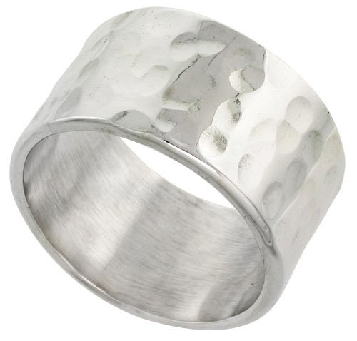 -. Title : Sterling Silver Hammered Wedding Ring Flat Top Handmade 1/2 inch wide
