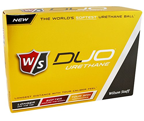 -. Binding : Misc. -. Brand : Wilson -. Department : mens -. Feature : Soft, thinA cast urethane outer cover provides exceptional spin and control on approach shots / DuPont HPF inner mantle layer provides velocity for maximum distance / New Wilson Staff 362 seamless dimple pattern results in optimized distance performance / Small low compression core provides soft feel / Wilson compression rating of 55 -. Label : Wilson -. Manufacturer : Wilson -. NumberOfItems : 1 -. ProductGroup : Sports -. ProductTypeName : SPORTING_GOODS -. Publisher : Wilson -. Size : Large -. Studio : Wilson -. Title : Wilson Staff Duo Urethane Golf Ball #1-#4 12-Ball Pack