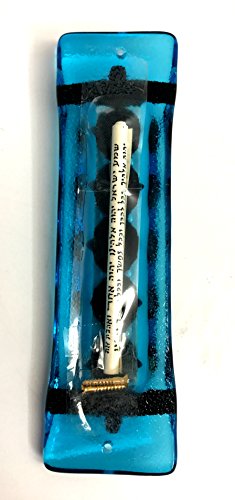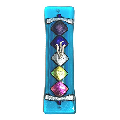 ARTISAN Crafted Glass Mezuzah with Colorful Shimmering Diamonds EASY MOUNTING with Brass Screws Included