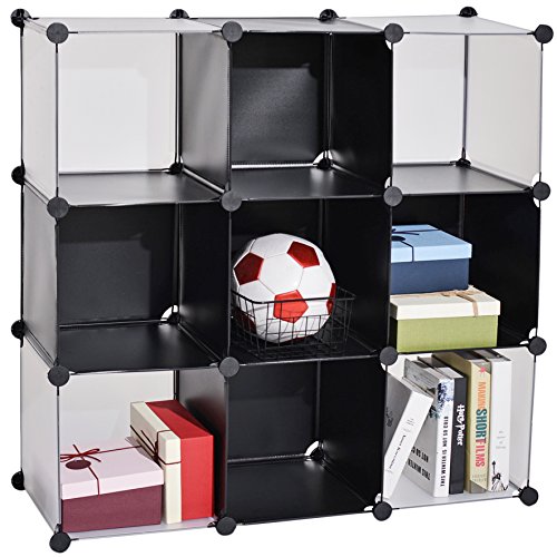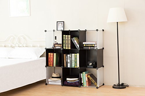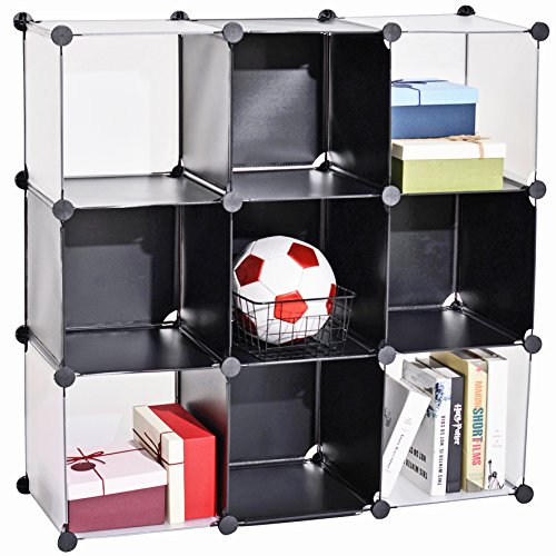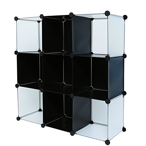 C&AHOME - 9 Cube Storage Organizer DIY Bookcase Shelf Toy Rack, Black Cross