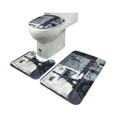 -. Title : Homespun Set Of 3 Piece Black Paris Eiffel Tower Pedestal Rug + Lid Toilet Cover + Bath Mat Set Household Bathroom Carpets Design Decor Houseware