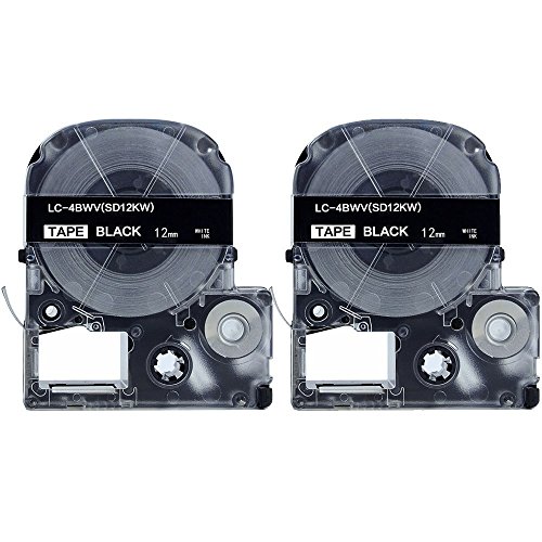 Absonic Tape Cassette Replacement for EPSON LW-300 LW-400 LW-500 LW-600P LM-700 LW-900P LW-1000P LC-4BWV9 (1/2" x 26', 12mm x 8m, White on Black) - 2 Pack