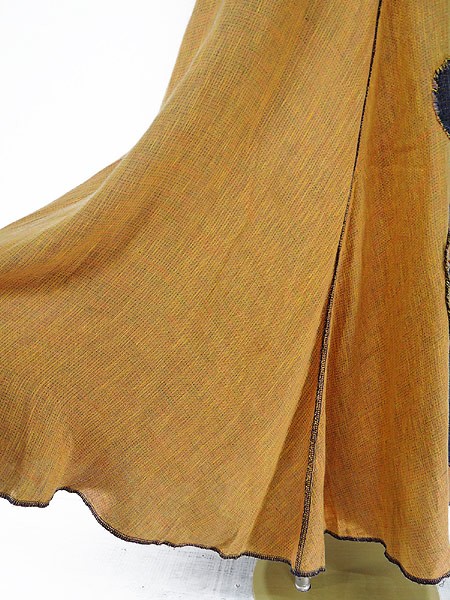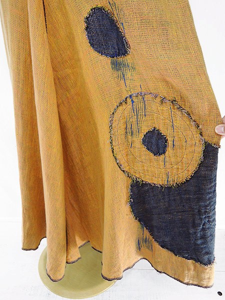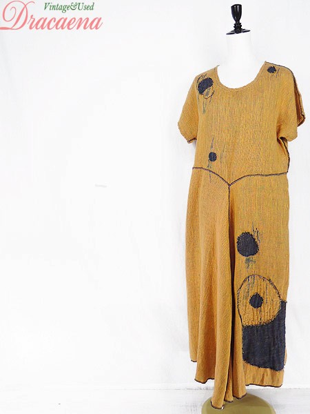 Ladies ブランド- カラー山吹色・紺 メール便不可 コンディション★★★ 素材- 表記サイズ記載なし 実寸サイズ 着丈 124 cm 身幅 51 cm 袖丈 26 cm ラグラン袖の為、襟元から袖先までの計測 ウエスト 36 インチ( 92 cm) ※ウエスト・ヒップ以外は平置き採寸