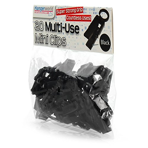 Hangerworld Super Strong Black Mini Plastic Clever Clips with Swivel Hook - 5cm - for Home, Office or Workshop, Pack of 20