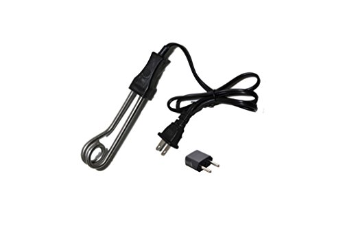 Dual voltage 300 to 1300 Watt 110V Black Travel Kit Great for Heating Boiling Chocolate Coffee Tea Drinking Water Heater Immersion Portable Boiler stainless steel Element Coil USA to Europe A