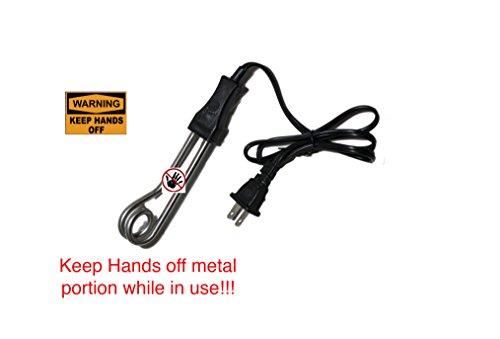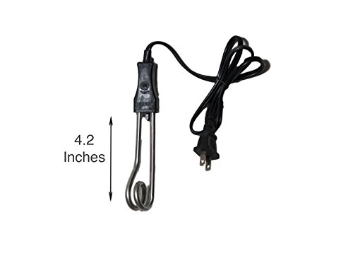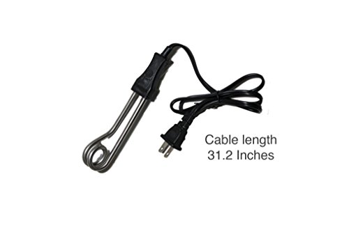 SPECIFICATIONS --- Heating element is at 6.3 inches and cable length at 32.5 inches. Always remove the plug of the immersion heater before and after use to avoid breakage. Comes with USA TO EUROPE ADAPTER!!!