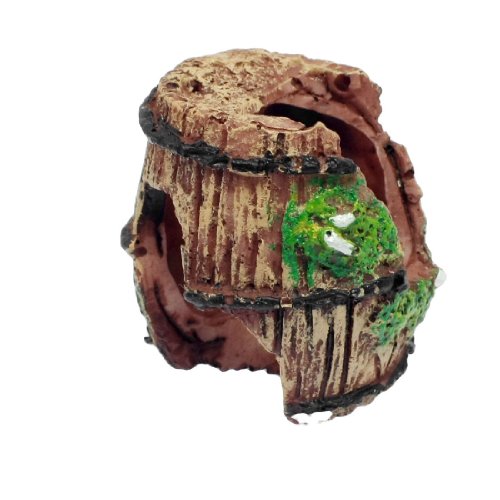 -. Feature : Product Name : Aquarium Ornament; Design : Barrel / Material : Resin; Color : Brown, Green / Total Size : 5.2 x 4.5cm/2.0" x 1.77" (L x Diameter) / Weight : 30g / Package Content : 1 x Aquarium Ornament