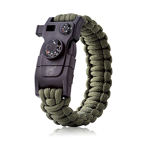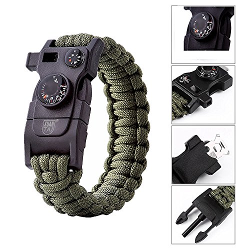 XUANTAI Paracord Survival Bracelet Bracelets for Emergency with Compass Thermometer,Whistle,Parachute Rope,Dragsaw,Fire Starter Kit for Hiking Travelling Camping Hiking Hunting