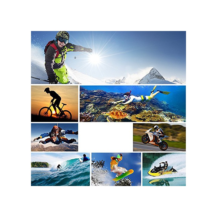 1.풍부한 악세사리:중량은 59g에 편리하고 운반할 수 있습니다.풍부한 악세사리가 부착,스노보드 등 다른 디바이스로 착장성과고 있습니다.자전거,오토바이,surfboad,스노보드,자촬영봉에 설치됩니다.