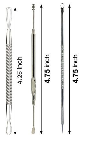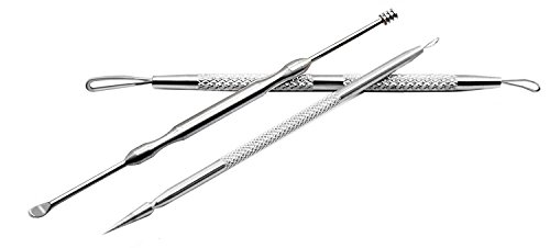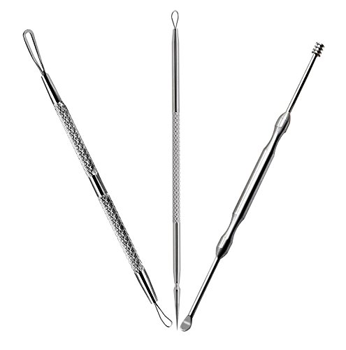 Comedone Extractor Tool Set Plus Ear-Pick For Blackhead, Facial Acne, And Comedones and Ear Wax Removal (3 Pcs)