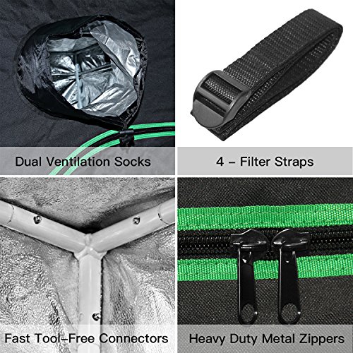 -. Brand : Minerva -. Feature : Package Includes: 1 - 48" x 48" x 80" or 48" x 24" x 60" indoor grow tent / 1 - Removable Mylar Floor Tray / 4 - Filter Straps Included / 1 ¨C Installation instructions. / The 600D material is tear proof and double stitched for perfect light blocking. Large heavy duty Zippers & Double Stitching for protection against light leaks. Easy entry and access. / Grow tent stands solidly, supported by strong metal poles. The frame is specially finished to ensure smooth installation and safe handling. / On the interior, a 95% - reflective mylar lining gives an efficiency boost to lighting setups of any power configuration. / Observation window makes it easy and comfortable to take a peek inside. -. Label : Minerva -. Manufacturer : Minerva -. MPN : MinervaPT01 -. PartNumber : MinervaPT01 -. ProductGroup : Lawn & Patio -. ProductTypeName : OUTDOOR_LIVING -. Publisher : Minerva -. Studio : Minerva -. Title : Minerva Mylar Hydroponic Grow Tent for Indoor Plant Growing with Installation Instructions
