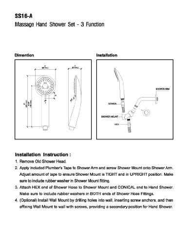 MODONA Massage Hand Shower Set - 3 Functions - 5 Year Warrantee