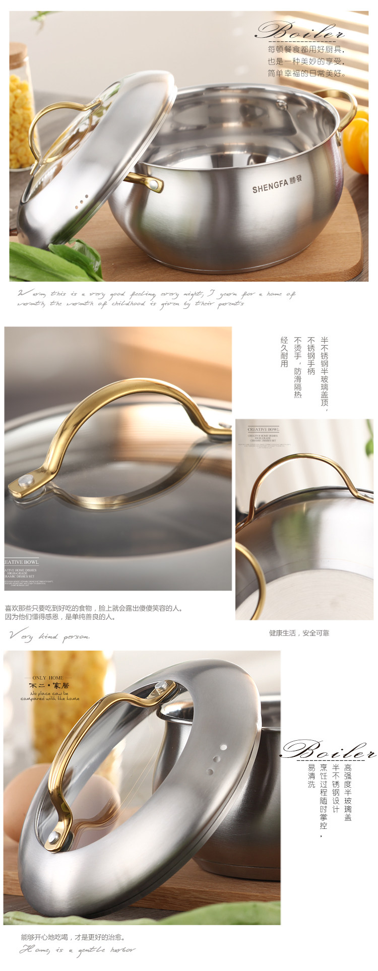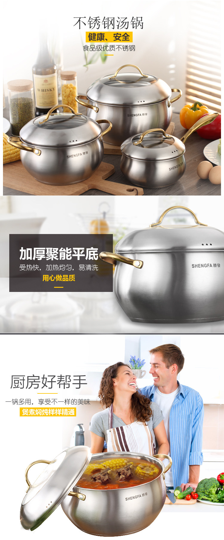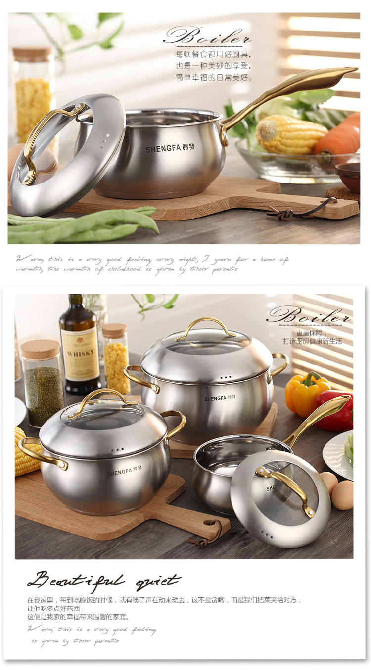 Brand: Shun Tai Model: BXG02 color classification: 16CM 18CM Golden Apple Golden Apple milk pot soup pot soup pot 24CM 20CM golden apple golden apple golden apple soup pot soup pot 22CM Suitable for: Gas cookers General Diameter: 24cm Material: 430 stainless steel pot Type: Compound multilayer substrate Origin: China mainland depth: 11-13CM