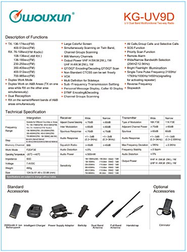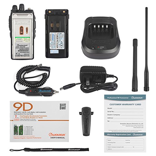 WouXun KG-UV9D Multi-Band Multi-functional DTMF Two-way Radio, Dual-Band Walkie Talkie, 7 bands included Air Band, 136-174MHz/400-512MHz, with 2 antennas + car charger + 2000mAh battery, Black