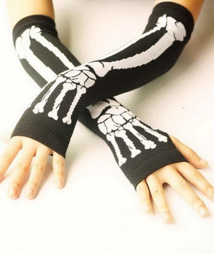 -. Title : Forever Lover Cool New Black Arm Warmer Fingerless Dress Gloves - Punk Gothic Dark Rock White Skeleton Long