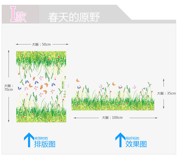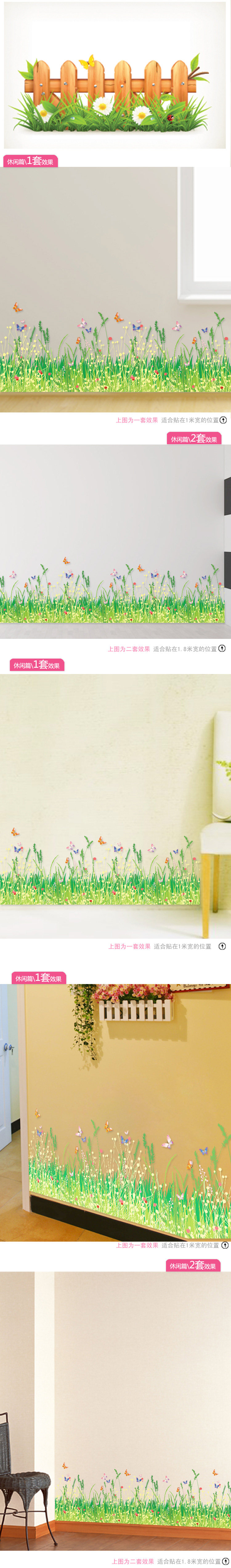 可移除墙贴纸/春天的原野 踢脚线防水墙纸贴画客厅温馨卧室贴花
