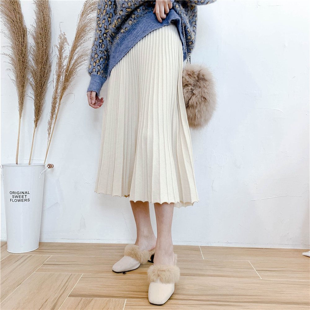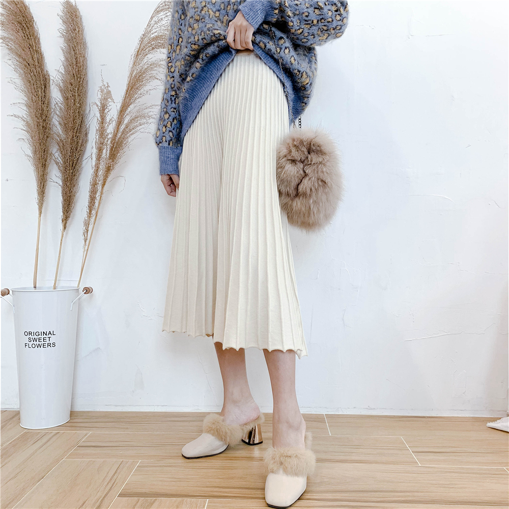 ウエストはゴムで履きやすく、ハイウエストで細いプリーツがすらっとした印象に仕上げてくれます。
