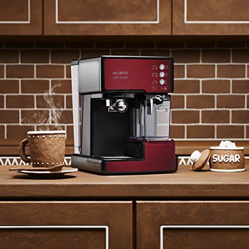 With one simple touch, Mr. Coffee Café Barista brews espresso and automatically froths milk for cappuccino and latte selections. You don't need barista know-how to create custom drinks like your favorite coffeehouse; simply pick a single or double shot filter, select your grounds, fill the milk reservoir, and choose your brew. A recipe book is included to help you create impressive coffee drinks—from Espresso Martinis to Raspberry Cappuccinos to Choco-Nutty Lattes.Feature