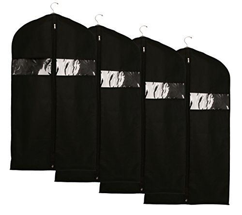-. Binding : Kitchen -. Brand : Hanne & Wyatt -. Color : Black -. EAN : 0647341447929 -. Feature : Premium quality - Made of thick and durable 120GSM non-woven material / Breathable - Non-woven material allows air to pass through but keeps dust and bugs out / Clear windows - Instantly see inside through two clear plastic windows / Eyehole - Metal eyehole allows for quick folding and easy carrying / Plastic lining - Lining around hanger opening prevents dust and bugs from entering -. IsAutographed : 0 -. ProductGroup : Home -. ProductTypeName : HOME -. Title : Set of 4 Breathable Garment Bags - Thick and Durable - Two Windows - Storage or Travel - 24x42.5" -. UPC : 647341447929