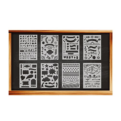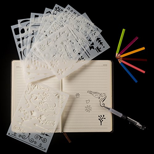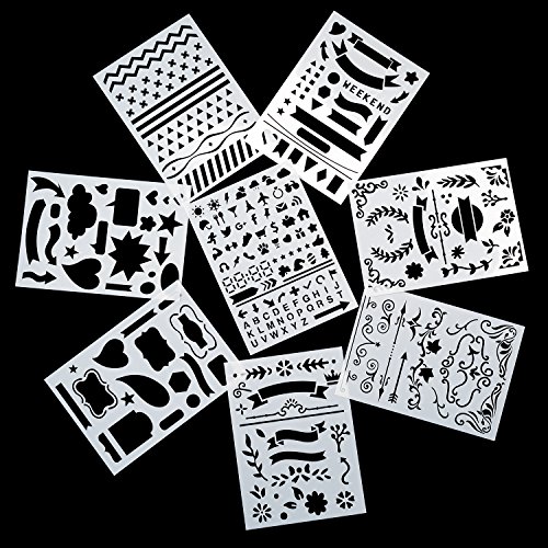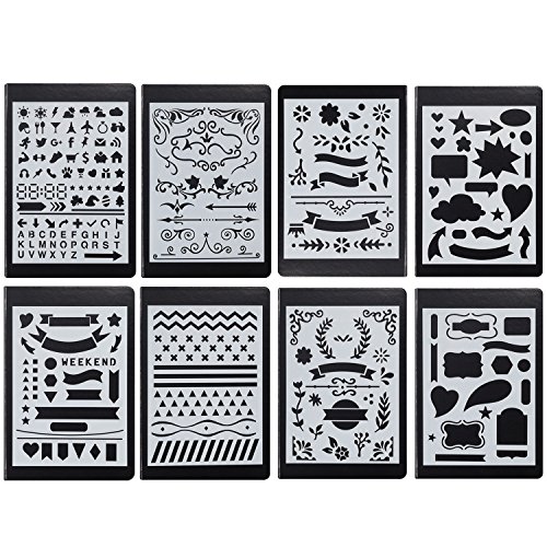 Deoot Bullet Journal Stencil Set Planner Stencil for Journaling, Diary, Scrapbooking, Card and Craft Projects, 8PCS ( 5 x 7 inch)
