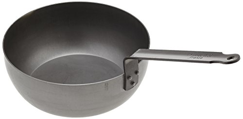 MADE IN FRANCE. Made of extra thick black steel /carbon steel. Iron handles. Excellent heat conduction -ideal for searing.
