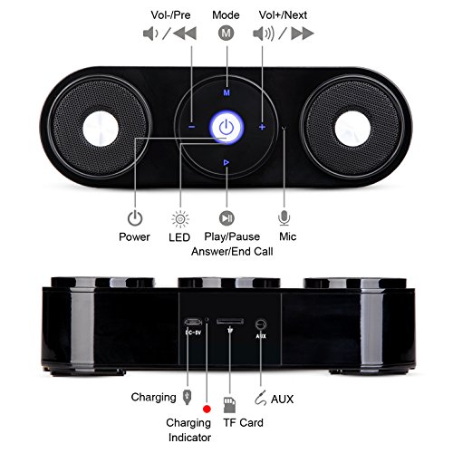 Sensitive touch button easy to control. Support Micro USB Charging, and MORE available Mode option, include Bluetooth, TF Card, FM Radio, AUX-IN.