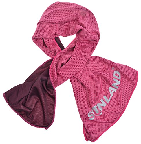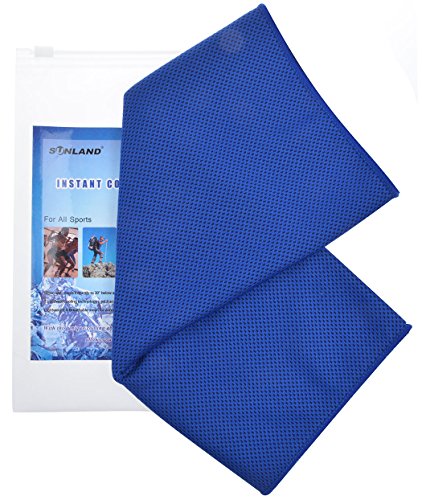 Sunland cooling mesh towels instant cooling against the skin for hours .To activate cooling technology get it soaked wring out excess and snap three times. Unique Mesh Design and Ice fabric make it breathable and more Cool than PVA material. It is super light weight, thin and fast drying make it very suitable for travel and sports.