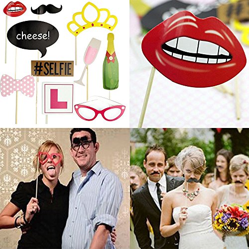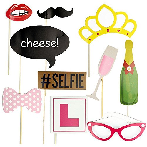 - Set of 10 pcs various photo props including crown, red lips, wine bottle, goblet, cheers, mustache, glasses, etc.