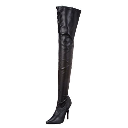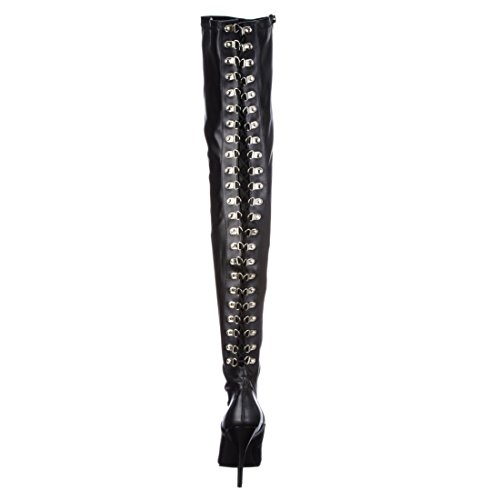 Womens Thigh High Boots 5 Inch Heels Lace Up Back Over Knee Stretch Black Boots