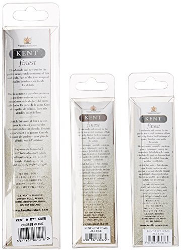 Studio : ken Publisher : ken Binding : Health and Beauty Product Description Get 3 of the bestselling Kent Men's Handmade Combs: 81T, FOT and R7T. The 81T: 73mm fine toothed mustache and beard comb. This specialist comb is perfect for grooming, maintaining and trimming facial hair FOT: 113mm fine toothed men's pocket comb R7T: 143mm fine and coarse toothed pocket comb. Every Kent comb undergoes the traditional craft of shaping and cutting from solid blank tortoiseshell effect material. Each tooth is cut by special circular saws, profiled, beveled and hand-polished on pumice wheels to ensure perfect hair penetration without scratching the scalp. Another unique feature is that the inside edge of each tooth is left with the rough saw-cut impression which, when the hair is drawn through the teeth, cleans the hair of dust and encourages the release of natural hair oils. Hand-made Kent combs are the ultimate in daily hair care and the mark of distinction. 0