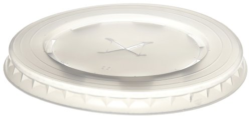 This SOLO L9N-0100 disposable flat translucent plastic lid with straw slots is suitable for use with a SOLO 9 oz. treated paper cold cup (sold separately). This lid seals the cup for resistance to spills and leaking. It is made of polystyrene for rigidity and durability, and has straw slots for holding a straw (sold separately) in the cup.