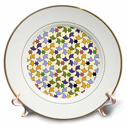 3dRose cp_56713_1 Spanish Windmills and Stars Geometric Mosaic Pattern Yellow Purple and Green on Vintage Cream Porcelain Plate, 8-Inch