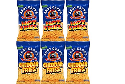Andy Capps Hot Fries and Cheddar Fries Corn and Potato Snack Variety Bundle (6 Bags 2 Flavors)