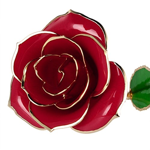 PREUP Love Forever Beautiful Long Stem Gold Foil Trim Red Rose Flower Best Gift (Red)
