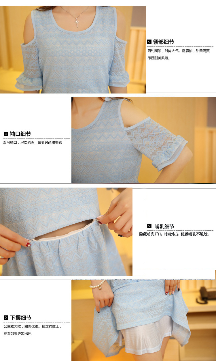 Product Name: Maternity Nursing Dress For Pregnant Women Clothing Summer Fashion Lace Breastfeeding Skirt Pregnancy Clothes Lactation Features Korean fashion maternity Casual dress for pregnant women、 you deserve to have. Specification: Color: blue、pink (As pictures show) Size: There are 3 sizes (M、L XL ) available for the listing. (All measurement in cm and please note 1cm=0.39in) we can custom-made、but will be more expensive 20% NOTE 1. Please compare the following detail sizes with yours before purchase. 2. Item color might vary slightly、 since each computer\'s monitor shows color bit differently. 3. Please allow 1-3cm differs due to manual measurement. Thanks for your understanding! Size: cm (1cm=0.39in)