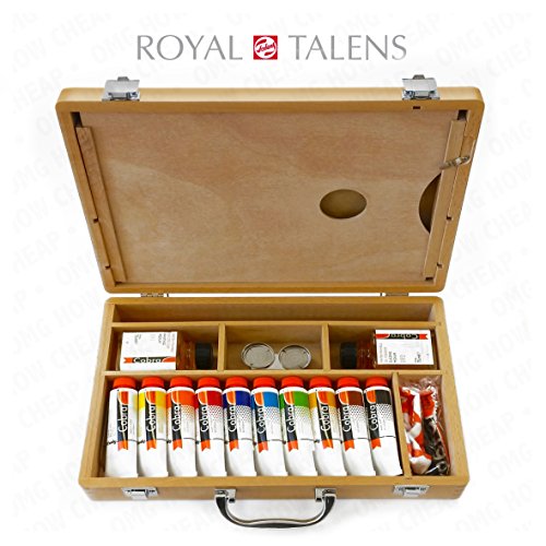 Royal Talens - Cobra Water Mixable Oil Art Set in Premium Wooden Case - With Paints, Palette, and Brushes