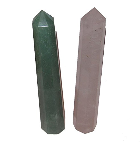 Tower Set 02 Green Aventurine Pink Rose Quartz Heart Chakra Love Healing Point Stones 5.5"