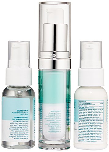 This kit includes: 1 oz. Brighten It Lactic Acid, .5 oz. Let There Be Light Powerful Lightening Serum and 1 oz. Skin Defense Broad Spectrum UVA/UVB Protection SPF 30